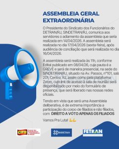 Exclusiva para quem faz parte da nossa família Sindetran RJ! Acesse conteúdos exclusivos, benefícios e informações importantes. Sua união fortalece o sindicato. Faça seu cadastro agora!